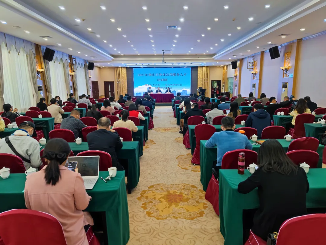 为深入贯彻落实习近平法治思想,进一步加强涉外法治建设,培养和发展我市涉外法律服务人才,提升我市律师涉外法律服务能力、理论基础和实务技巧,助力粤港澳大湾区建设,结合我市法治政府建设工作要求,12月11日,肇庆市司法局、肇庆市律师协会联合举办2021年肇庆市涉外法律服务人才培训班。肇庆市司法局相关人员、肇庆市律师协会会长谢丽英、副会长郑勇以及部分律师(含公职律师)共90余人参加培训。