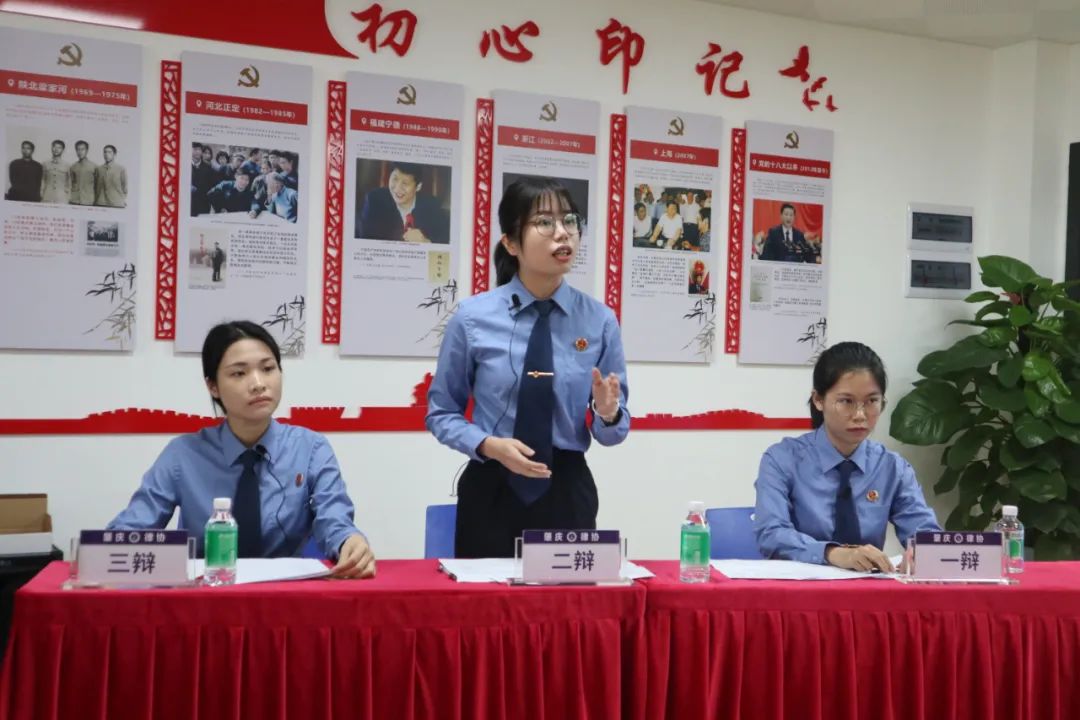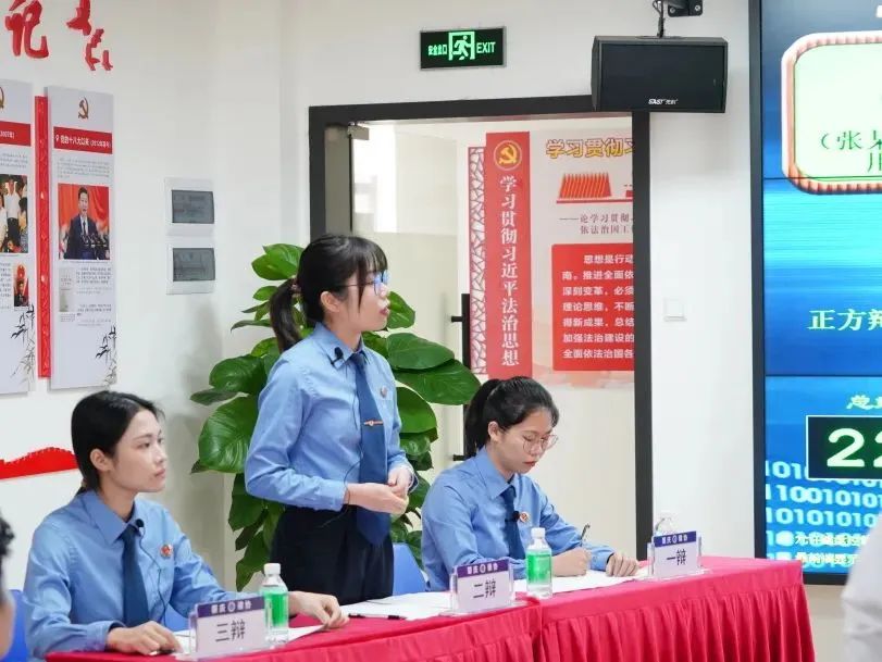 近日,肇庆市律师协会与高要区人民检察院开展了一场检律论辩训练赛。本次训练赛市律协辩论队派出了三位律师,与高要区人民检察院的三名青年干警进行三对三论辩训练赛。高要区人民检察院检察官王雯婷担任辩论教练兼主持,高要区人民检察院党组成员、政治部主任罗霞和市律协副会长梁柱坚担任此次辩论赛评委。