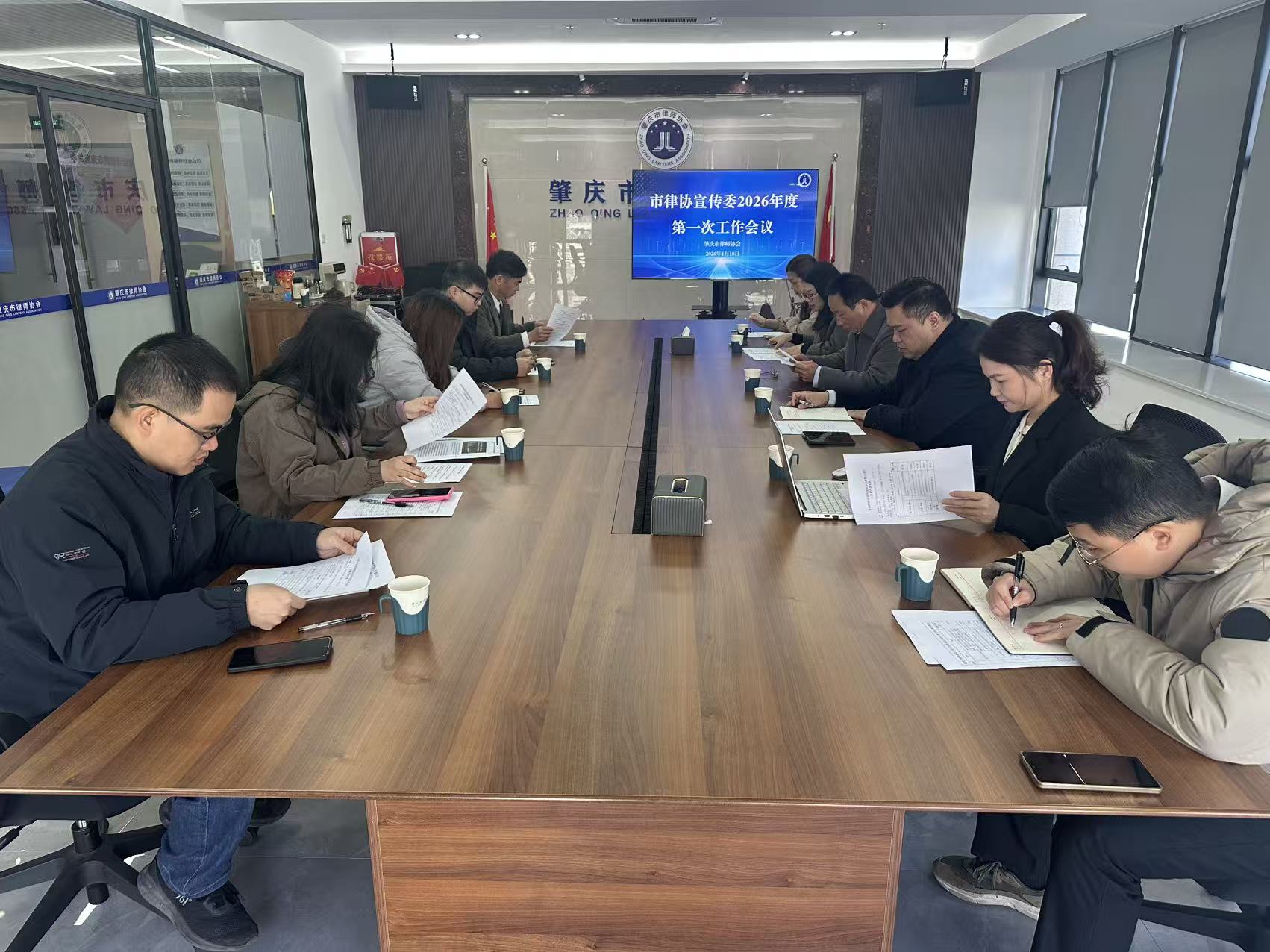 为深入贯彻落实创新驱动发展战略,积极响应“因地制宜发展新质生产力”的时代号召,以高质量宣传工作赋能律师行业高质量发展,全面提升肇庆律师行业的社会影响力与品牌美誉度,2026年1月10日上午,肇庆市律师协会宣传工作委员会(以下简称“宣传委”)召开2026年度第一次全体会议。市律师协会副会长张海洋,宣传委主任李丽珊,副主任李巧琴、李若盈、潘宇波及委员、秘书共10人参加会议,市律协监事陈宗胜列席会议,本次会议由李丽珊主任主持。