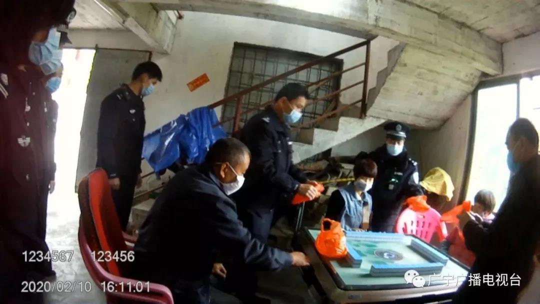2月10日下午,在广宁县石涧中心幼儿园门口小屋处,村民王某清、杨某珍、黄某冰、王某清等四人因无所事事,无视政府发布的通告,相约打麻将,被巡查民警当场抓获。